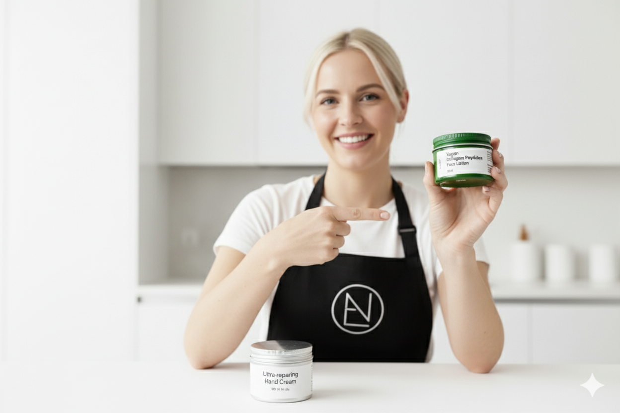 We’ll guide you step by step through the art of formulation, using premium French ingredients to create your own Super-Repairing Hand Cream and a Custom Vegan Peptide Face Lotion—personalized to your skin’s needs.